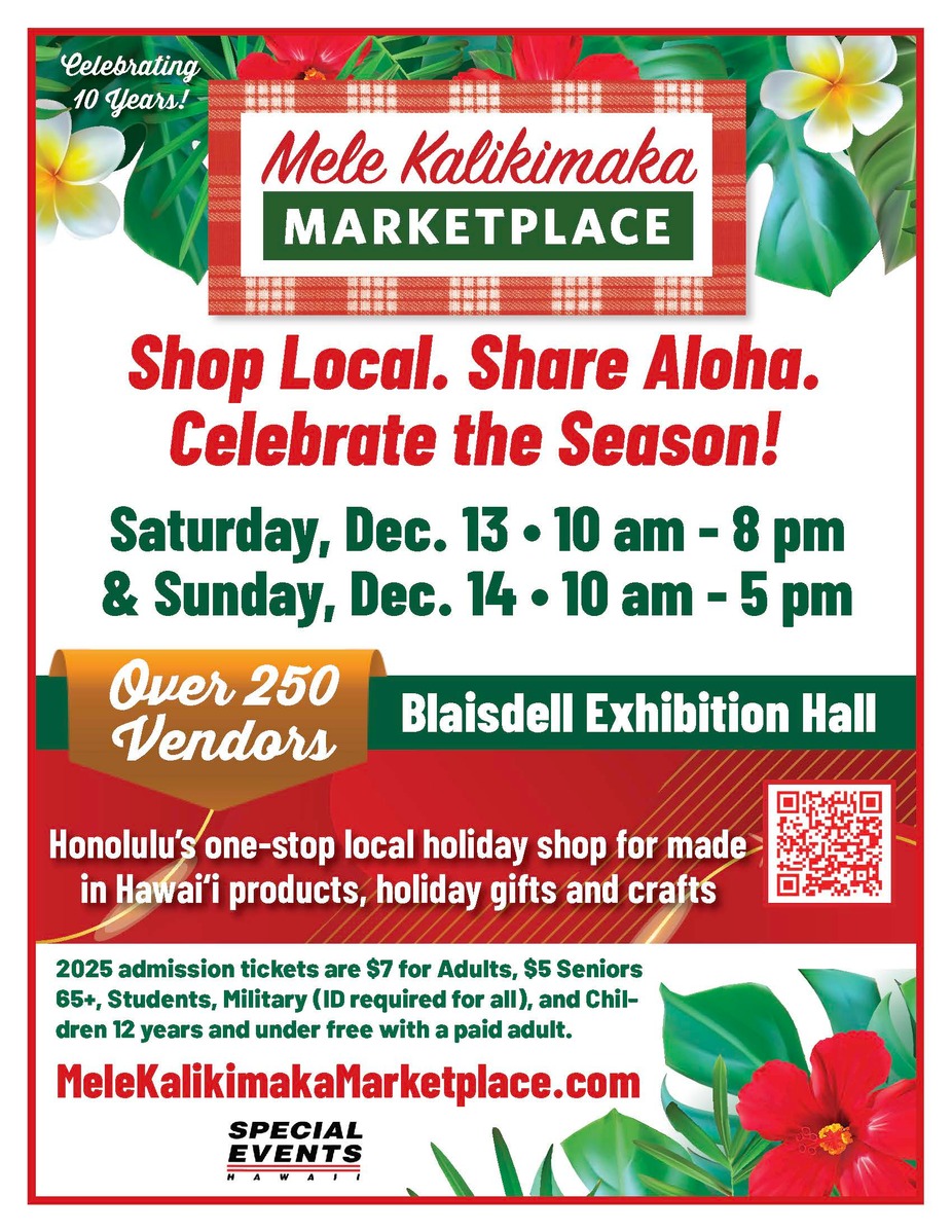 10am-5pmMele Kalikimaka Marketplace - Neal Blaisdell Exhibition HallSunday, December 14th, 2025