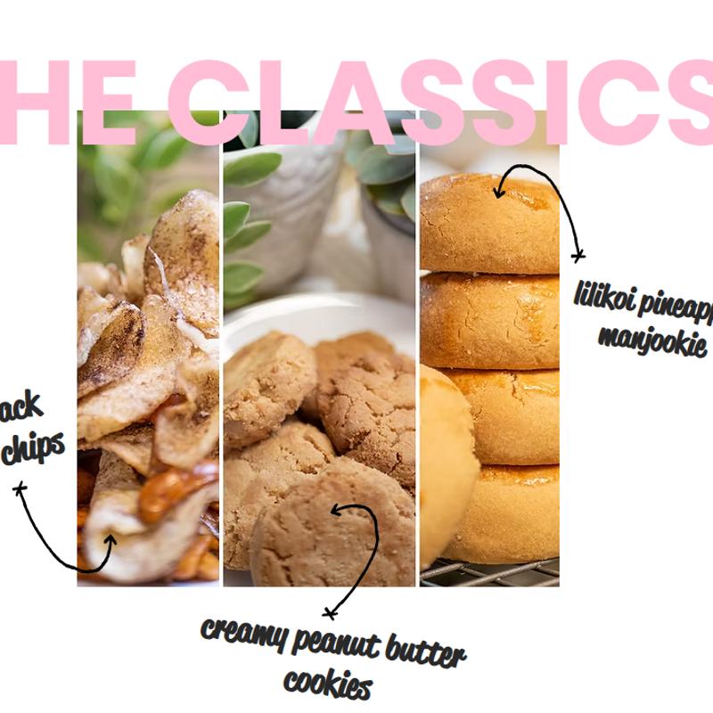Pineapple Manjookie, Peanut Butter Cookies, Truffle Chips